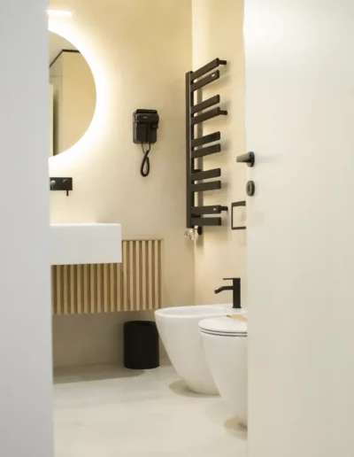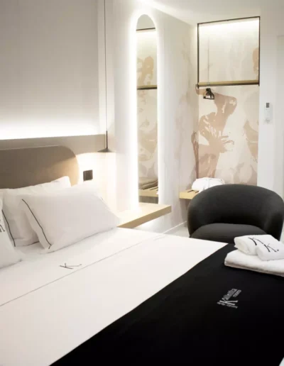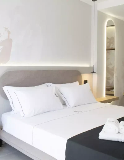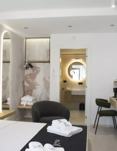 La Camera 217 è una delle sistemazioni più ampie e prestigiose di Kalinifta Rooms Luxury Style. Situata al piano terra, è classificata come Suite Deluxe