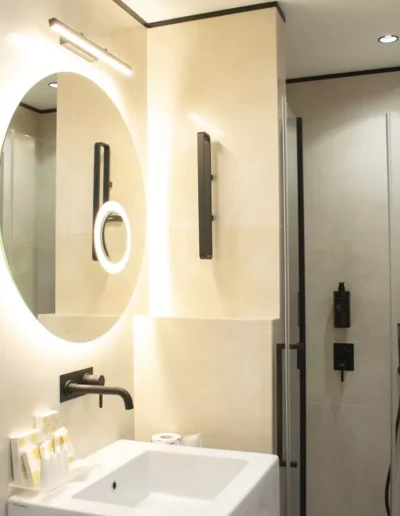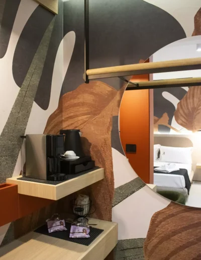 La Camera 218 è una soluzione elegante e raffinata di Kalinifta Rooms Luxury Style. Situata al piano terra è dotata di ogni comfort, offre anche un alta tecnologia al servizio del relax: grazie al sistema Alexa Hospitality, ogni ospite può richiedere servizi (massaggi, trattamenti corpo, transfer, vini, champagne, aperitivi, e molto altro) con comandi vocali e ricevere informazioni utili per il soggiorno.